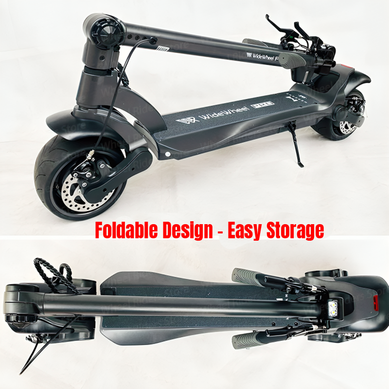 Ultra-wide never-flat tires + dual suspension for car-like stability. Exclusive US seller.