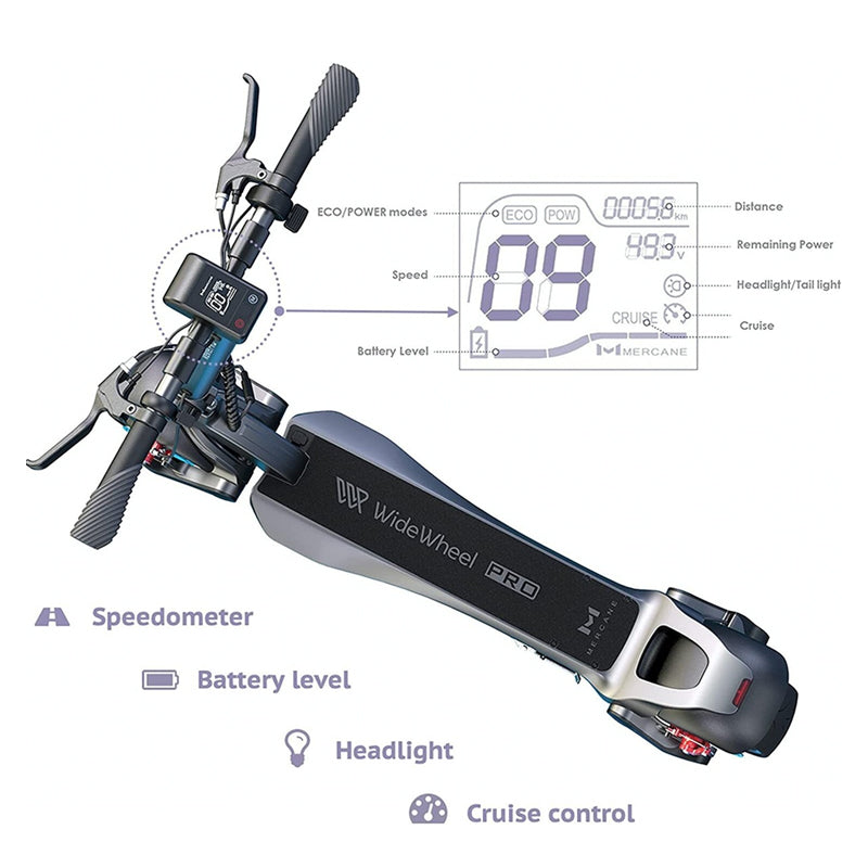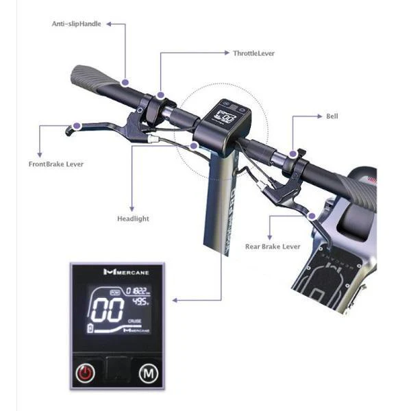 - Dual 120 mm disc brakes + lights + cruise control